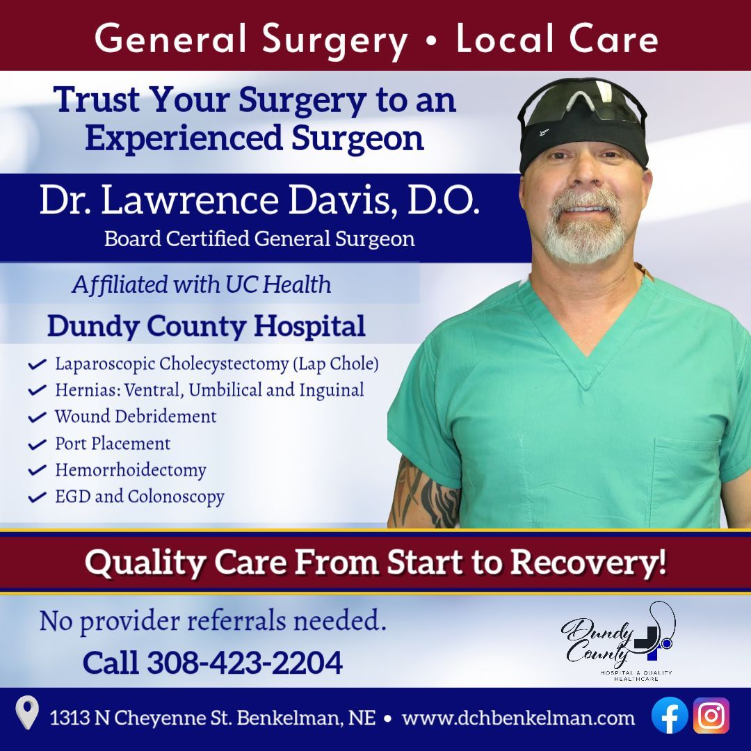 Dundy County Hospital is a critical access hospital located in Benkelman, NE. Get the care you need, from professionals who are leaders in their fields.